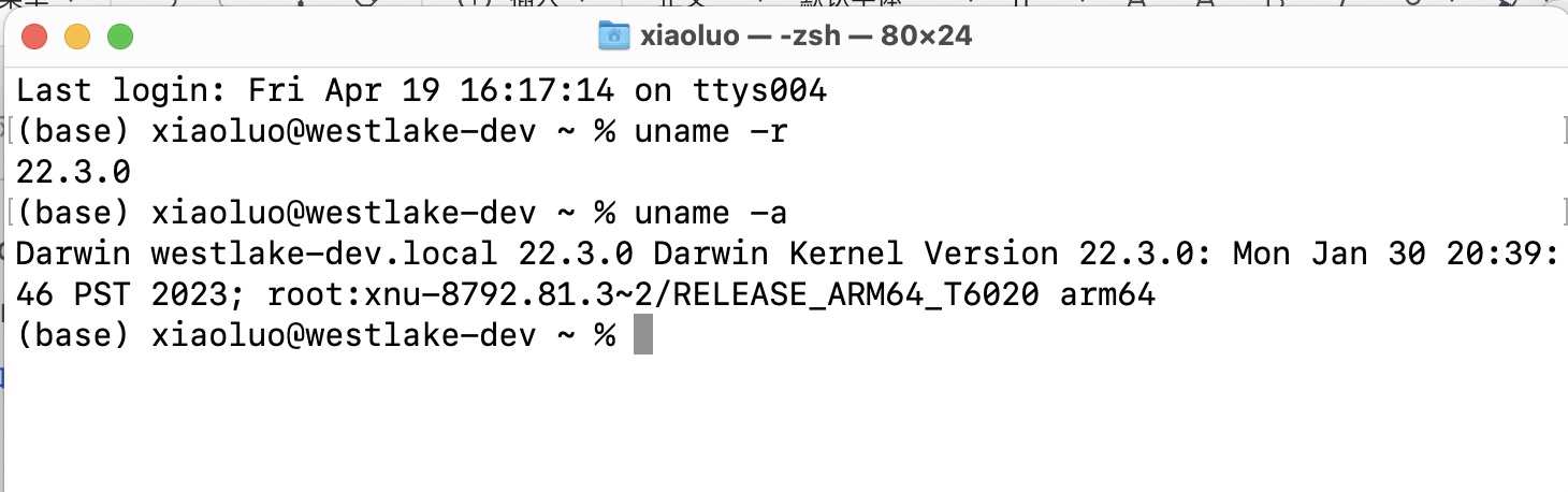 Darwin westlake-dev.local 22.3.0 Darwin Kernel Version 22.3.0: Mon Jan 30 20:39:46 PST 2023; root:xnu-8792.81.3~2/RELEASE_ARM64_T6020 arm64